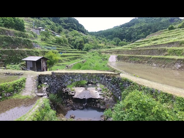 余の滝は落差48mで末広がり美しい落水が見られます。余の滝のある、南院内地区は美しい水にしか生息しない、国の特別天然記念物「オオサンショウウオ生息地」に指定されており、滝までの遊歩道や『日本の棚田100選』に選ばれた両合棚田も近くにあり、里山を生かした田園風景を眺め、散策スポットにもなっています。